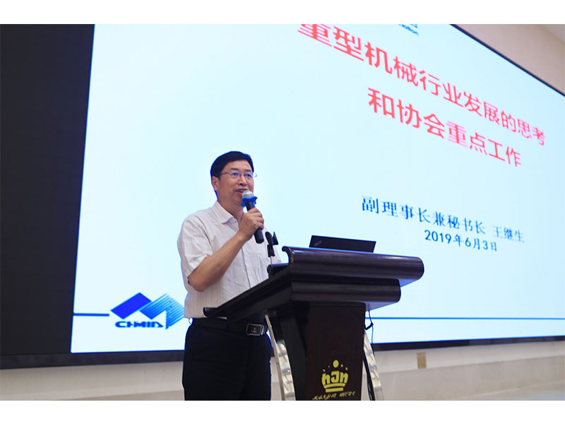▲中國重型機(jī)械工業(yè)協(xié)會副理事長兼秘書長王繼生致辭并作《重型機(jī)械行業(yè)發(fā)展的思考和協(xié)會工作報(bào)告》